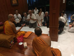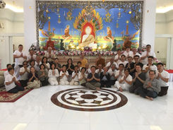 There is a morning session inside the Grand Hall of the new Pagoda with the Abbot of the temple, Ajahn Gong and translated by Saddha Yongjun.
