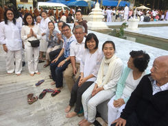 The lay people lined up around the Chedi while the Pindapat were performed. There were few hundreds monk including the senior monk LP Seng present to grace the occasion.