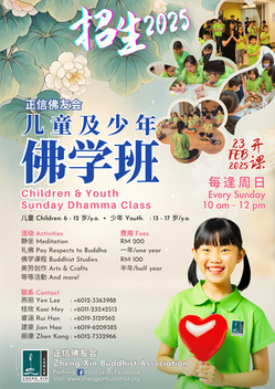 ❤️任何欲参加我们佛学班的人(儿童或青少年)都可以通过以下联系方式咨询我们或于 23-2-2025(周日)上午 10 点到直接至我们的【正信】中心登记註冊。