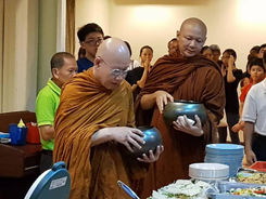 “Long Por Khun”和“Ajahn Cagino”被邀請前來「正信」做簡短的開示。接著佛友們一起來「供僧」。