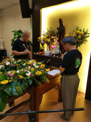 今天是衛塞節,「正信」佛堂簡單鮮花佈置,早上约9:30am大家齊聚佛堂,誦「遺教經」,「八大人覺經」,「釋迦牟尼聖号」。。。。
