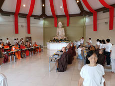 去年「正信」佛友只負責分配協助早上「托鉢」,今年出席人數較少,「正信」會員也協助分配及準備「出家人」午餐。接著也幫忙把食物呈上大堂予「出家人」。除此之外也幫忙載送「出家人」往返場地,清洗工作及善後工作。